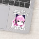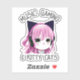 Anime Girl em rosa e preto com aspas, música, jogos e gatinhos.