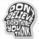 Adesivo Não acredite em tudo o que você pensa em preto e b