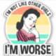 Não sou como outras garotas - sou pior. Este cúmplice sarcástico engraçado é um presente excelente para uma mulher, namorada ou esposa que tem reputação de má decisão ou ser um agitador, e ama sarcasmo. Perfeito para qualquer um com senso de humor. Apresenta uma dona de casa humorística de 1950 contra um pôr do sol angustiado.
