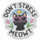 Este adesivo adorável apresenta um gato preto gelado vestindo óculos de sol em forma de coração, cercado por céus ensolarados, nuvens fofinhas e tulipas florescentes. Com a mensagem brincalhona "Não Stress Meowt", é um belo lembrete para respirar fundo, abraçar o seu felino interior, e deixar de se preocupar. Perfeito para amantes de gatos, entusiastas do alivio de estresse, ou qualquer pessoa que precise de uma dose de positividade. Coloque-o no seu laptop, garrafa d'água, planejador, ou em qualquer lugar que você precise de um lembrete para desfazer e aproveitar as coisas simples. Este vinil resistente é feito para resistir às aventuras do dia a dia, tal como a sua atitude legal.
