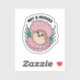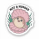 Uma ilustração adesiva de um peixe-pufe com o texto "não um abraço" por cima. O pássaro está numa concha e está rodeado de algas marinhas. O fundo é um gradiente azul claro.