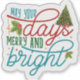 Este adesivo quadrado vibrante apresenta uma alegre saudação natalina com letras ornamentadas. Enriquecido com elementos festivos como uma árvore de Natal e azevinho, transmite votos calorosos para dias brilhantes e alegres durante a temporada festiva do Natal.
