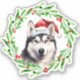 Adesivo Natal Cachorro Siberian Husky Santa Hat Holiday