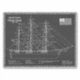 Esta ilustração em estilo de planta destaca o famoso clíper Flying Cloud contra um fundo escuro, realçando os detalhes intricados do aparelho e da estrutura do navio em linhas luminosas. O estilo visual se assemelha a um diagrama clássico de arquitetura naval, permitindo que os espectadores apreciem a complexidade de um dos navios à vela mais rápidos já construídos. Construído em 1851 pelo mestre construtor naval Donald McKay, o navio fez parte de uma nova geração de clíperes extremos projetados para transportar carga através dos oceanos a velocidades sem precedentes.