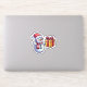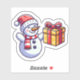 Um bonitinho bonitão adorava com um lenço vermelho e branco listrado e um chapéu de inverno aconchegante sorri brilhante enquanto segurava um presente belamente embrulhado.