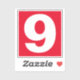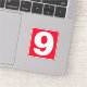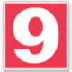 Número Nove. Número 9 Número individual como autocolante. Vermelho e Branco.