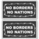 A simple design featuring the phrase “No Borders No Nations” framed by barbed wire.