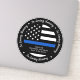 Na Memória Adorável. Honre seu amado policial e com este decalque de carro da Thin Blue Line da Polícia em preto e azul nas cores da bandeira policial. Personalize com o nome do seu oficial e a data de EOW. Este decal de carro memorial da polícia de linha azul será um tesouro para honrar um policial ou polícia morto. Perfeito para os departamentos de polícia honrarem um oficial caído. COPYRIGHT © 2020 Judy Burrows, Black Dog Art - Todos Os Direitos Reservados. No Adorável Memory Policial Memorial Car Sticker