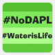 #NoDAPL, e #WaterisLife escritas sobre um fundo de diferentes tons de verde. #NoDAPL representa o movimento em oposição à construção do gasoduto Dakota Access. Muitos gasodutos vazam, o que leva à contaminação do abastecimento de água e à destruição do solo em toda a vida. É imperativo que protejamos a água potável. #ProtectCleanWater