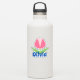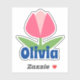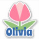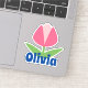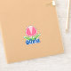 flor de tulipa cor-de-rosa com adesivo de nome das folhas verdes, facilmente personalizada com seu nome.