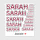 Um nome simples em caps burgundy em 15 tamanhos diferentes, recomendado para uma mulher. O nome pode ser alterado com outro nome curto. O padrão é Sarah.