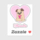 Adesivo Nome de Pug Cardíaco Rosa Kawaii Cute Personalizad
