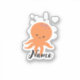 Um polvo cor de laranja giro em fundo azul. Vinhetas de vinilo personalizadas. Adicione o nome para torná-lo personalizado.
