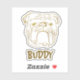 Mostre o seu amor por Buldogue com este adesivo de estimação personalizado com um rosto de buldogue desenhado à mão e texto ousado com o nome "Buddy". Perfeito para decorar laptop, garrafas de água, capas de telefone ou cadernos. Presente de excelente para donos de buldocos, amantes de animais de estimação, ou qualquer um que queira um adesivo de cão único e divertido. Durável e fácil de aplicar. Personalize com o nome do seu animal de estimação para criar uma manutenção personalizada.