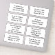 É sempre uma tarefa ter que escrever nomes e endereços manualmente em envelopes, especialmente quando você tem muito a fazer, como quando enviar seus Cartões de natal ou casamento e convites de festas de aniversários! Aqui pode ser a solução que você está procurando! Autocolantes individuais para seus convidados/destinatários com 8 nomes e endereços diferentes, fáceis de personalizar, em um tipo simples e ousado. Você pode simplesmente alterar o texto ou, se preferir, pode ir um passo além e alterar o estilo e a cor da fonte, por meio do clique para Personalizar Opção Adicional. Seus envelopes parecerão muito legais!