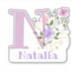 Adesivo Nome Natalia & Inicial com Floral Design