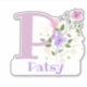 Personalize qualquer item com um Nome e Inicial com o adesivo Floral Design Recort-Out. O nome de exemplo é Patsy.