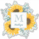 Este adesivo personalizado apresenta um girassol moderno, folhas e design folhagem com monograma. Personalize-o com seu nome e inicial.
