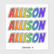 Adesivo Nome próprio "ALLISON" com cor divertida do arco-í