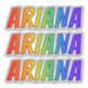 Este design de adesivo excitante, divertido e multicolorido apresenta o nome comum ou o nome próprio "ARIANA", com as letras do nome a terem um espectro colorido do arco-íris como um padrão de coloração gradiente. Pode ser um presente divertido dar a alguém cujo nome é Ariana. [~Z0000361]