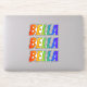 Este design de adesivo excitante, divertido e multicolorido apresenta o nome próprio comum ou o nome próprio "BELLA", com as letras do nome apresentando um espectro colorido do arco-íris como um padrão de coloração gradiente. Pode ser um presente divertido dar a alguém cujo nome é Bella. [~Z0000361]