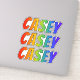 Esta design de adesivo divertida, vibrante e excitante apresenta o nome próprio comum ou o nome dado "CASEY", com as letras do nome tendo um padrão colorido de gradiente inspirado no espectro do arco-íris colorido. Pode ser um presente divertido dar a alguém chamado Casey. [~Z0000361]