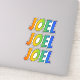Este design vibrante, divertido e excitante adesivo apresenta o nome próprio comum ou o nome próprio "JOEL", com as letras do nome apresentando um espectro colorido do arco-íris como um padrão de coloração gradiente. Pode ser um presente divertido dar a alguém chamado Joel. [~Z0000361]