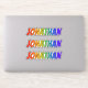 Este design multicolorido, excitante e vibrante adesivo apresenta o nome próprio comum ou o nome próprio "JONATHAN", com as letras do nome com um espectro colorido do arco-íris inspirado num padrão de coloração gradiente. Pode ser um presente divertido dar a alguém chamado Jonathan. [~Z0000361]