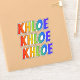 Este design de adesivo divertido, multicolorido e excitante apresenta o nome próprio comum ou o nome próprio "KHLOE", com as letras do nome apresentando um espectro colorido do arco-íris como um padrão de coloração gradiente. Pode ser um presente divertido dar a alguém chamado Khloe. [~Z0000361]