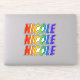 Esse design multicolorido, excitante e vibrante adesivo apresenta o nome comum ou o nome próprio "NICOLE", com as letras do nome tendo um espectro colorido do arco-íris como um padrão de coloração gradiente. Pode ser um presente divertido dar a alguém cujo nome é Nicole. [~Z0000361]
