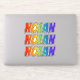Este design multicolorido, excitante e divertido adesivo apresenta o nome próprio comum ou o nome próprio "NOLAN", com as letras do nome apresentando um padrão colorido de gradiente inspirado no espectro do arco-íris colorido. Pode ser um presente divertido dar a alguém chamado Nolan. [~Z0000361]