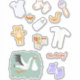 Novos adesivos para bebês, com roupas para bebês, brinquedos e muito mais. Divertido e neutro para um bebê ou uma garota.