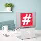 Hashtag Número. Número # Número individual como autocolante. Vermelho e Branco. 8 x 8 polegadas