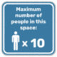 Número máximo de placas pessoas para espaços fechados. Ícone vetor com cores personalizadas. Cor de fundo personalizada. Texto personalizado.