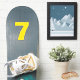 Número Sete. Número 7 Número individual como autocolante. Dourado e branco. 8 x 8 polegadas