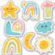 Arco-íris, estrela, nuvem, caracol arco-íris, lua, sol e nuvem.