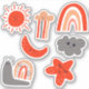 Arco-íris, estrela, nuvem, caracol arco-íris, lua, sol e nuvem.
