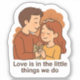 O amor está nas pequenas coisas que o adesivo celebra gestos de coração com este adesivo romântico mostrando um menino oferecendo uma flor e um toque tenro na testa. É sobre o amor expresso através de pequenas ações significativas.