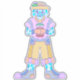 Este desenho digital apresenta um cão azul feliz com manchas azuis, vestindo um chapéu amarelo, shorts amarelos com sotaques coloridos, uma camisa púrpura e luvas bonitinhas. Ele está segurando uma planta cercada que cresceu, mostrando seu polegar verde. A expressão do cão é incrivelmente feliz, e está claro que ele está orgulhoso de sua planta. Esta trabalho de arte é perfeita para qualquer um que ama arte animal fofa e peculiar.