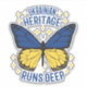 Design surpreendente com uma borboleta com a bandeira da Ucrânia e a citação "A herança da Ucrânia é profunda".