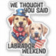 Celebre o seu amor pelos Labradores e patriotismo com esta maravilhosa design com dois adoráveis cachorros Labradores esportivos de latifundiários americanos e um chapéu. A citação engraçada e humorística, "Pensamos que tinhas dito fim de semana Labrador," acrescenta um toque divertido, fazer-o perfeito para amantes de cães e para aqueles que gostam de uma boa risada. Ideal para qualquer ocasião, esta design deve trazer um sorriso ao seu rosto e calor ao seu coração. ideia de presente de excelente para o amante do cão.