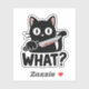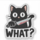 Este adesivo de gato malvado é perfeito para qualquer um que ama um pouco de humor negro! Apresentando um gato preto bonito segurando uma faca sangrenta e a simples e efetiva pergunta "O quê?", esta design é uma maneira divertida de expressar seu lado malicioso. Feito com vinil durável, este adesivo é excelente para laptop, garrafas de água e muito mais.