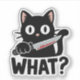Este adesivo de gato atrevido é perfeito para quem gosta de um pouco de humor negro! Com um adorável gato preto segurando uma faca ensanguentada e a pergunta simples, mas eficaz "O quê?", este design é uma maneira divertida de expressar seu lado travesso. Feito de vinil durável, este adesivo é ótimo para laptops, garrafas de água e muito mais.