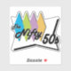Vinheta autocolante com uma imagem de forma de diamante azul, verde, rosa e amarelo, em branco, com sombra negra e "50 Nsexty" em caracteres pretos. Veja a coleção inteira do Nifty 50 Sticker nos CONVITES | Seção Stickers & Labels
