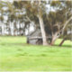Perto de Lismore, em Victoria, Austrália, uma velha barraca de madeira que corre no meio de um campo verde, rodeado por chicletes altos e lentos. Para que foi usada a barraca? A grama vibrante contrasta com a estrutura rústica, criando uma cena serena e pacífica.