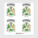 Concebidos na Irlanda, estes autocolantes mostram o nome da família em inglês, com a tradução irlandesa do gaélico por baixo e o significado do nome sob o casaco de armas.