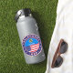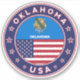 Crachá de Oklahoma com bandeira de Oklahoma e bandeira dos Estados Unidos, forma arredondada. Emblem do adesivo do carro de Oklahoma, vinheta de bagagem de Oklahoma, vinheta de viagem de Oklahoma