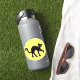 Este vinil tem um gato preto com olhos verdes e uma rasteira na frente de uma lua amarela cheio.