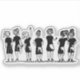 7 meninas na linha - prontas para a atração e ansiosas para jogar outra rodada de frisbee final, com amor. Desenhado à mão e inspirado por um fim de semana de última hora na Universidade de Richmond RedHots.