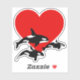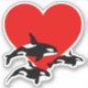 Legal adesivo matador de baleias Orca. Baleias Orca nadando sobre um grande coração de amor lido. Eu adoro baleias assassinas de Orca. Presente de amante de baleia Orca.